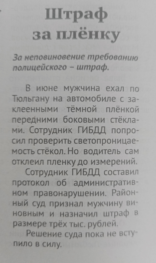 Читайте статью "Штраф за пленку" в очередном выпуске газеты "Прогресс-Т"версия для печати